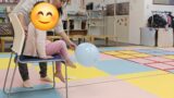 トランポリンをしながらの、物の名前をあてるフラッシュカードを行いました!!🐼