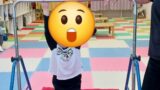 マットでは、1回目は前転。回転した後、足の裏で着地し起き上がることが難しいようでした。
