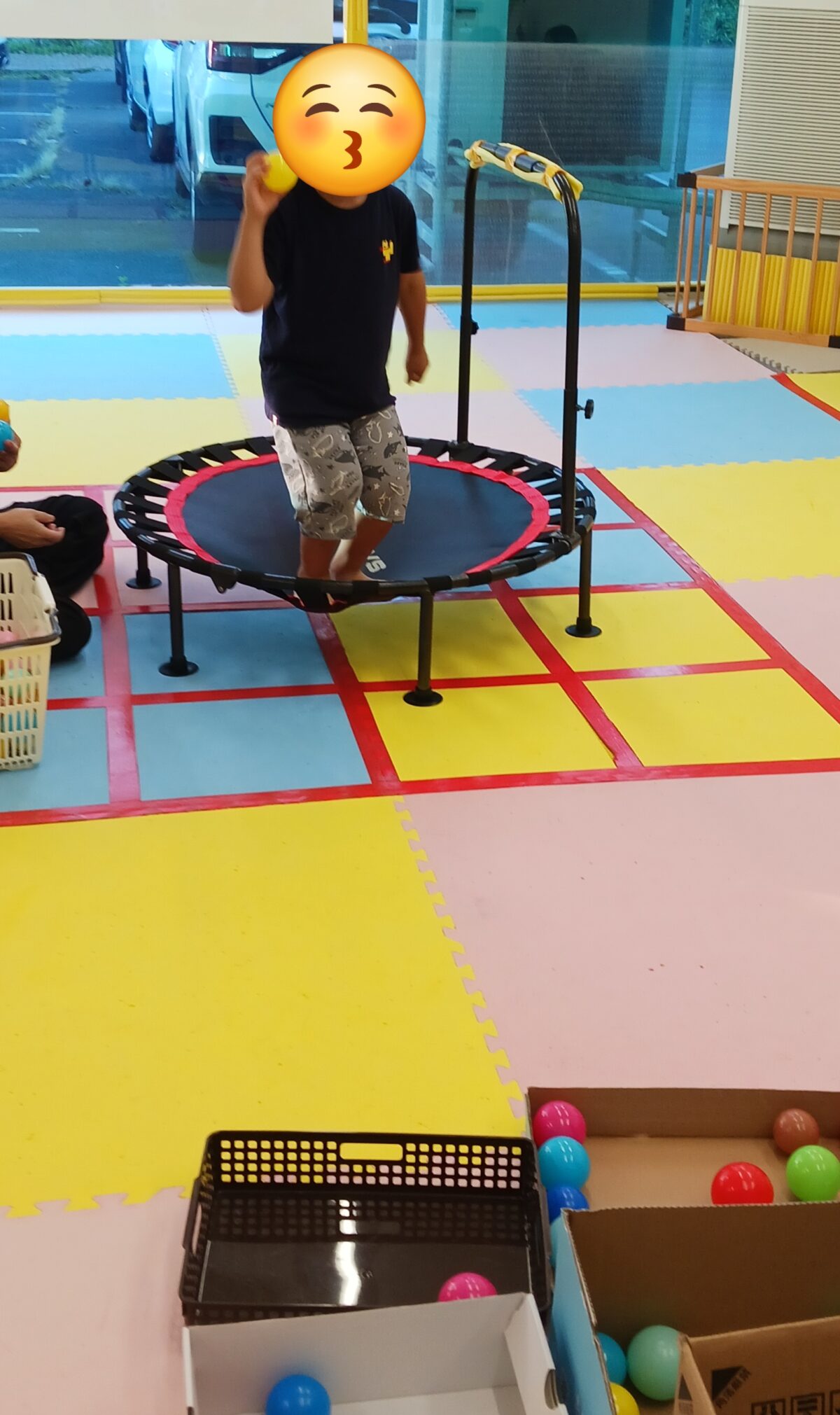 ⭐トランポリン⭐では、跳びながらの~ボール投げ!🥎