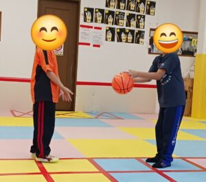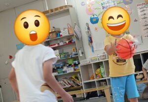 バウンドパスなどもやってみてまるでバスケットボール選手のようなパスをしていました!