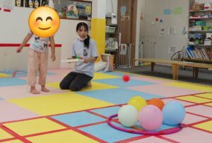 活動後の自由遊びでも、カラーボール投げや風船バレーなどで身体を動かして遊びましたよ🤩