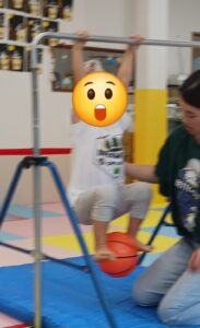 お次はボールを足ではさんでぶら下がってみましたよ!🥎