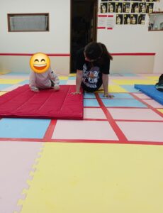 2回目では、途中から膝を使って進む子や体勢がわからずハイハイで行う姿が