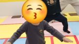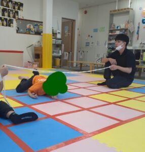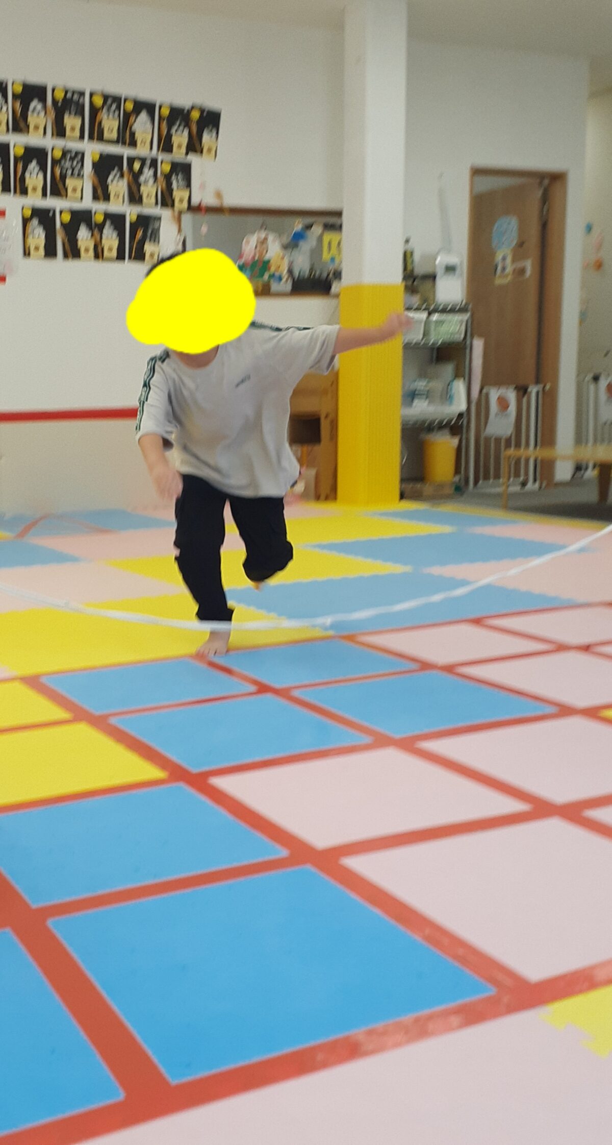 縄をジャンプする・縄をくぐる動作をしました!縄に当たらないように慎重に渡っていました