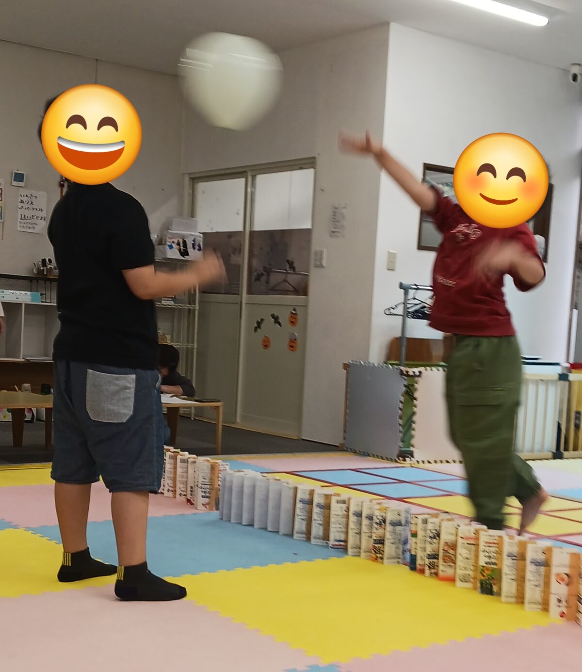 3対3でチームの全員が風船に触ってから相手コートに返すルールで行いました😌