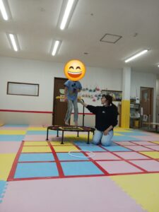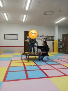 2回目は、1回目同様10回跳んでから、職員が指定した色に跳びながら体の向きを変え