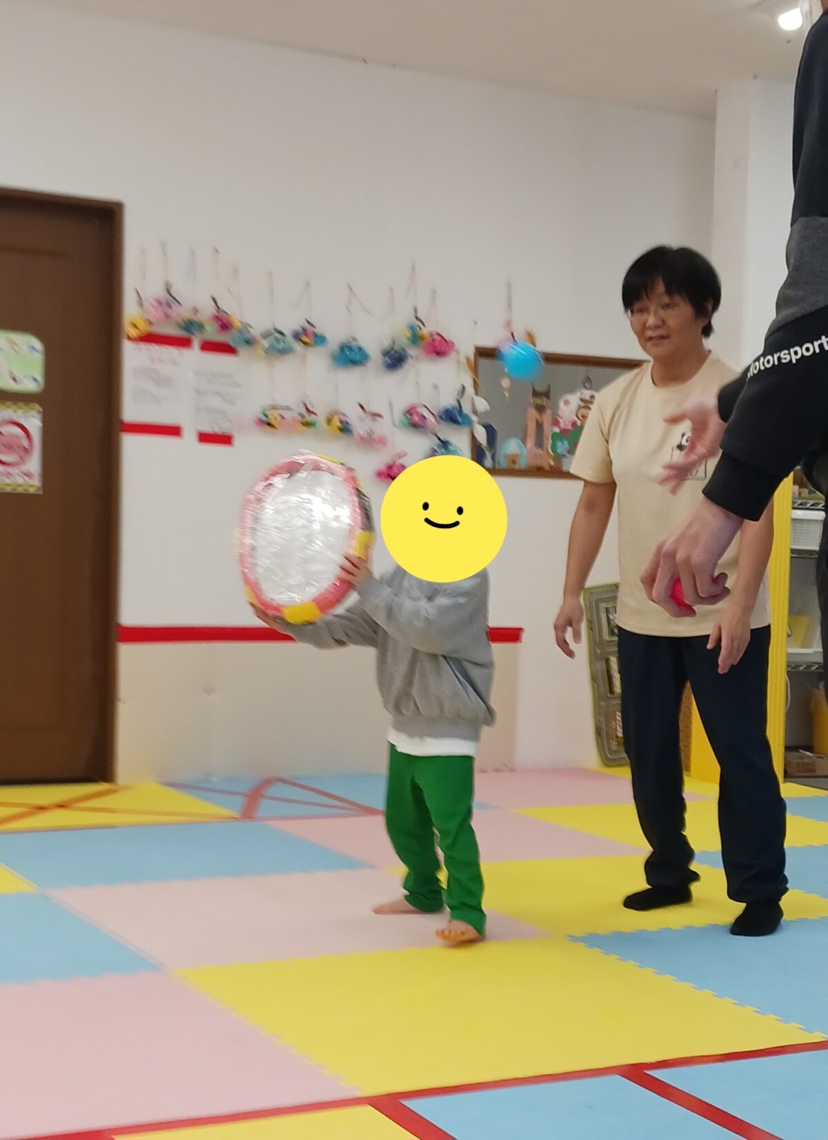 昨日の集団活動の様子です😃🧸プールスティックにラップを巻いて、ラケット風にしてボールを打ち返すゲームをしました☆