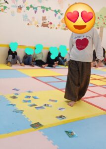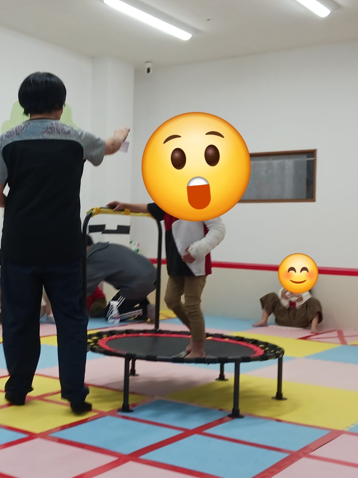 カードをみてからトランポリンジャンプ10回、その後に同じカードを探すゲームをしました☆