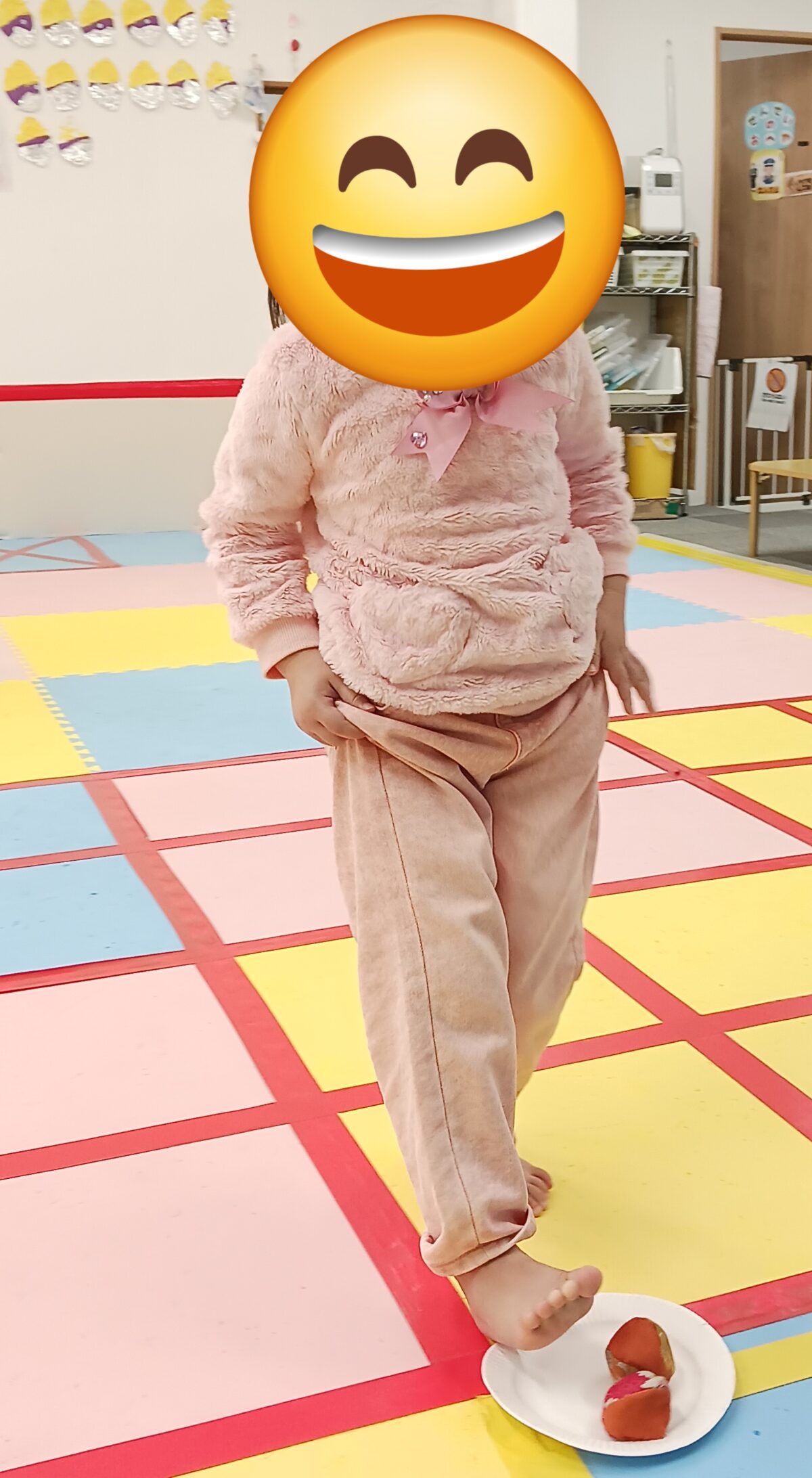 お次はお手玉を掴んだまま歩いて運ぶ活動をしてみました!😚