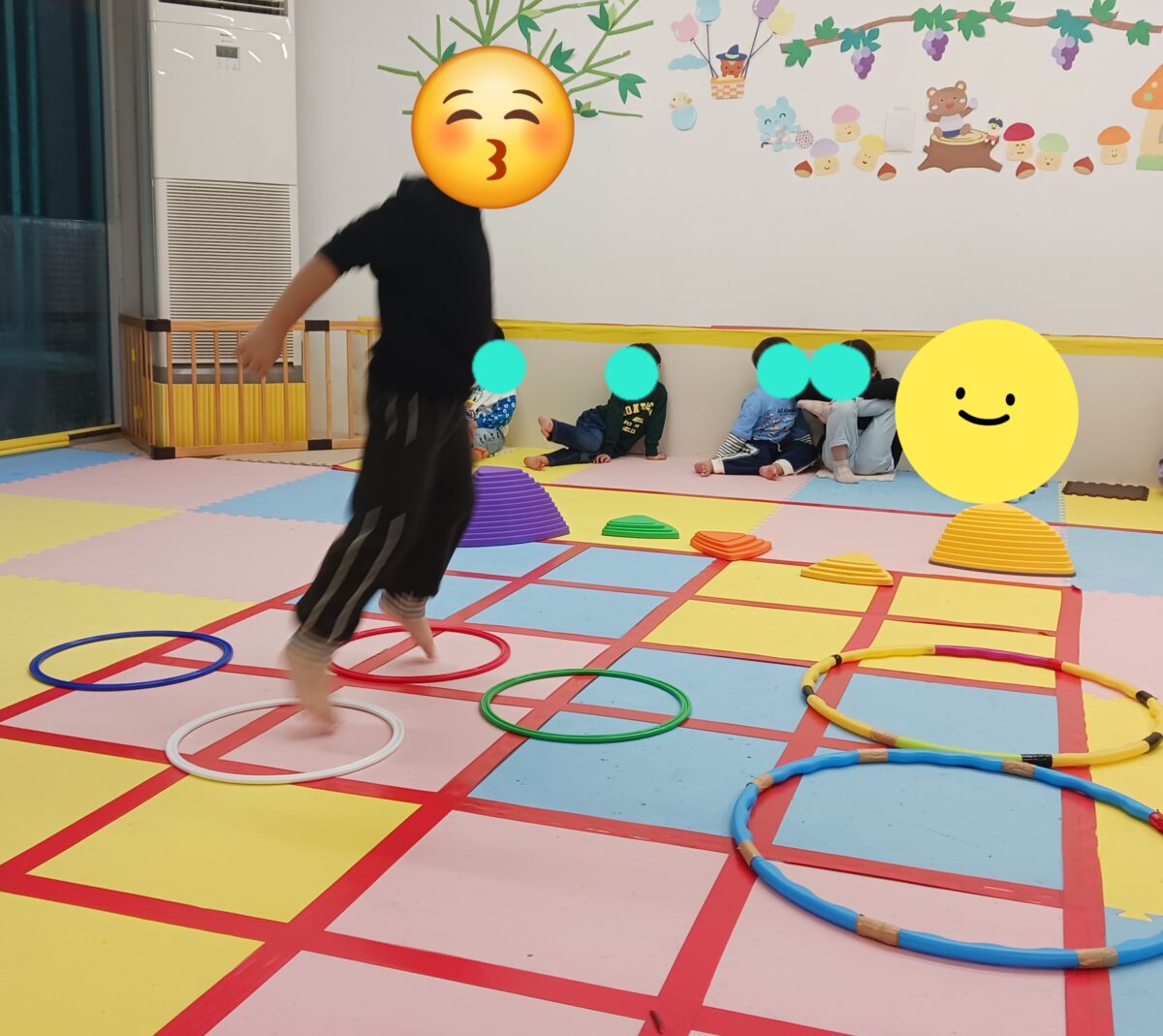 マット、バランスストーン、ケンパ、トランポリン、サッカーシュートと長めのコースでしたが、子どもたちは一生懸命取り組んでいましたよ~😆👏