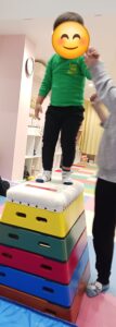 自由遊び時間にも跳び箱をして縦跳び、横跳びの練習をしていました。