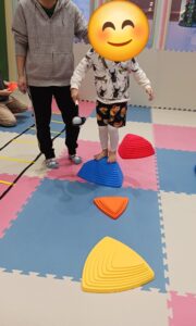 バランスストーンでは、おたまからカラーボールが落ちないよう持ちながら渡りました!