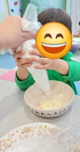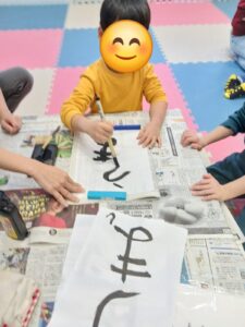 1/5に書き初めを行いました。今年の干支の文字や、名前を書く姿が見られましたよ🎠