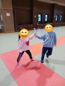 1/6は武道館に行ってリレーを行いました。バトンを誰に渡すのか、職員の声や友達が立っている姿を見て判断し走っていました😊