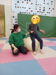ほとんどの子が職員と手をつないだ状態でバランスをとりました。
