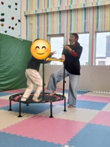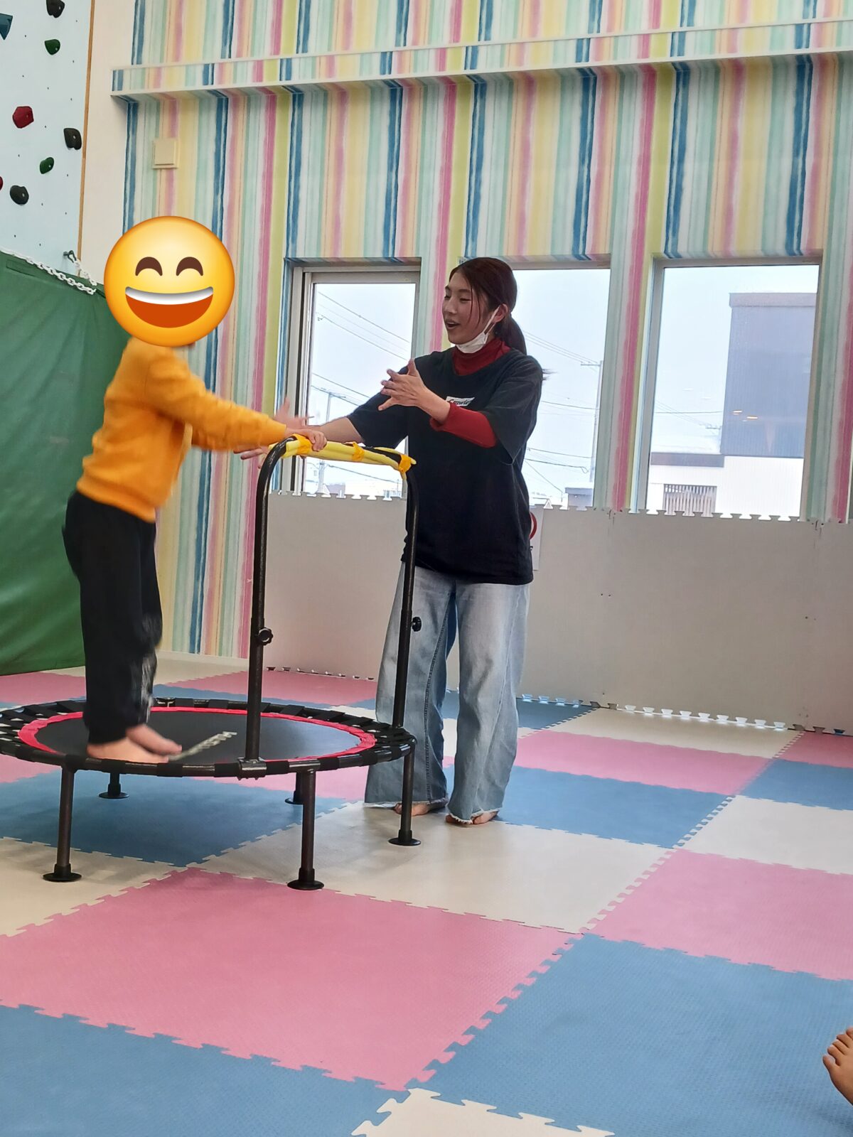 集団活動後も何名かトランポリンをしながら職員とジャンケンをする姿が!!