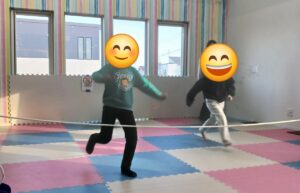走って縄を跳び越えたり、ヘビさんのように動く縄をジャンプしたり🐍