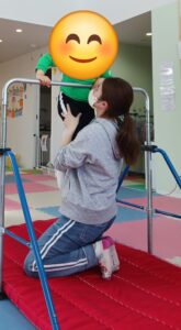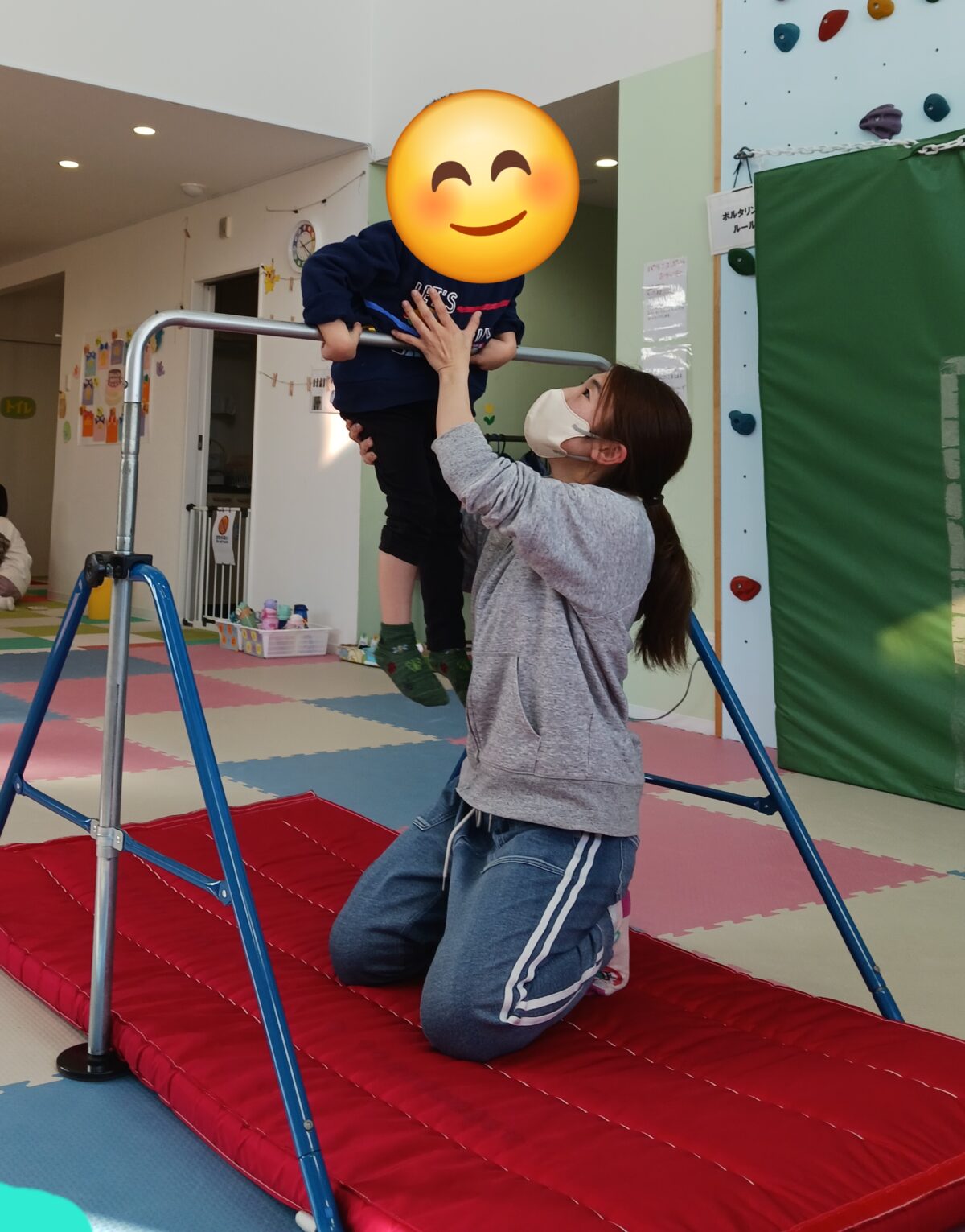 集団活動では、10秒ぶら下がった後に布団干しを行いました。