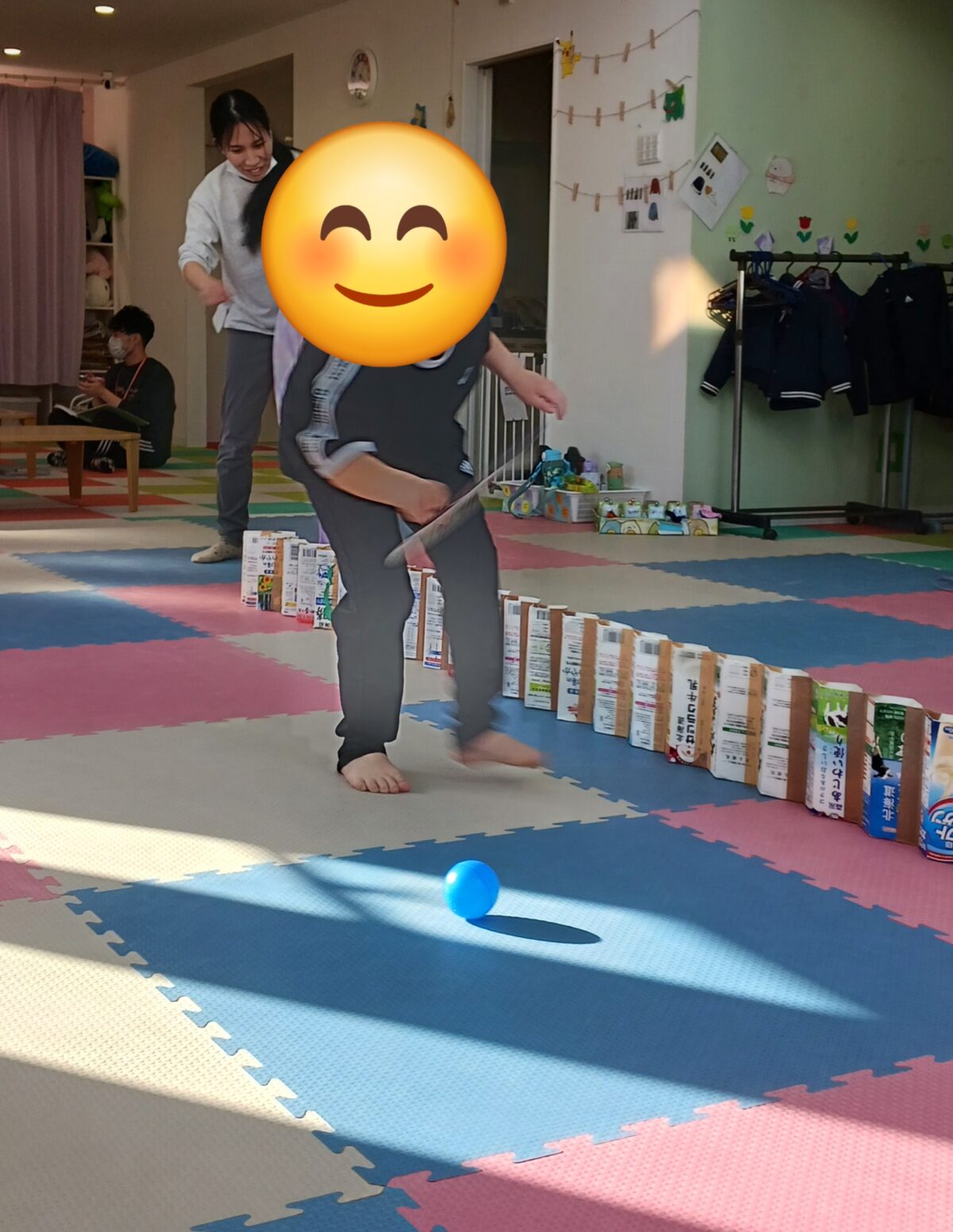 昨日の集団活動はうちわで仰いでカラーボールを移動させる活動を行いました😄